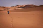 Erg Chebbi, situated near the border with Algeria, is one of Morocco’s two big Saharan ergs or large sandy dune fields. Formed by wind-blown Saharan sand, the shape-shifting dunes can reach a height of up to 160 meters and cover a vast area in the middle of the Moroccan stone desert. Near the edge of the dunes is Merzouga, a small village that serves as a local tourist center with number of companies organizing sunset and sunrise trips riding dromedaries deep into the sand dunes and enjoying the stunning views of sun raising and setting behind the great orange sandy dunes. But probably the best trips are the ones taking you on the overnight stay with sleeping in Berber tents under the great dunes and great food - delightful Tajine prepared on the spot – served under the soft glow of those bright stars on vast night sky.